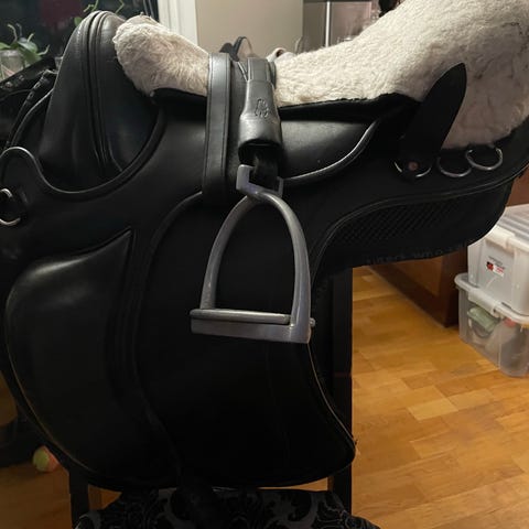 Lufter interessen for salen min. Str M. Stigbøylereimer og stigbøyler følger med. Reimer for gjordtfeste byttet på en side for 6 mnd siden. Brukt på irish cob og kaldblods.