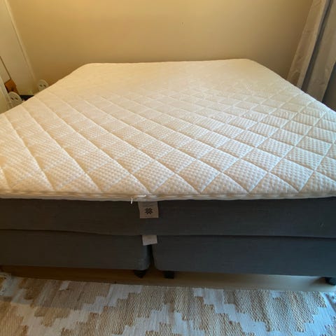 Seng med Jensen madrasser. Sengen med galv og ramme rundt måler Bredde 244 cm lengde 202 cm totalt. 2.stk Jensen madrasser er 90 x 200 standard