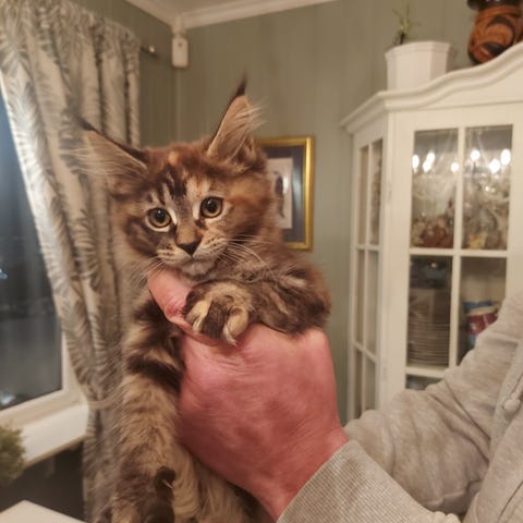 Våre eldste Maine coon blir 12 år dette året, og lever livet som den dronningen hun er.
