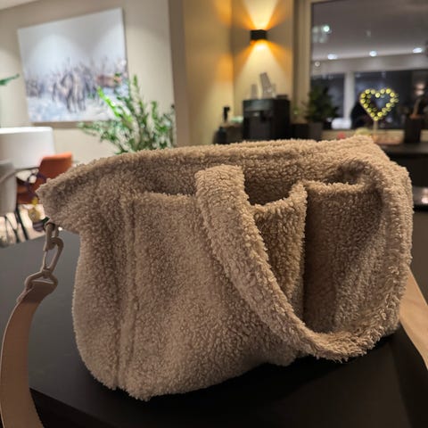Kul og ettertraktet The Tote Bag i teddy-versjon, størrelse medium. Brukt av meg, men i veldig fin stand.