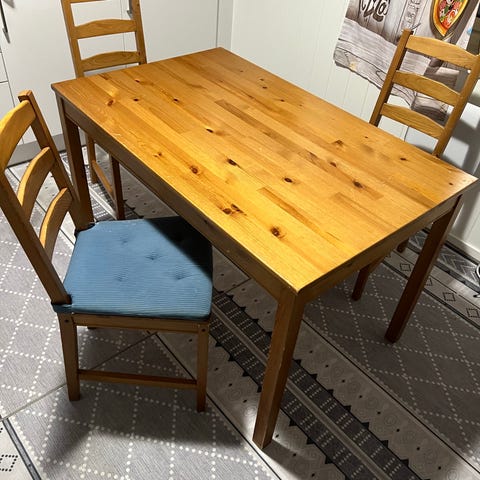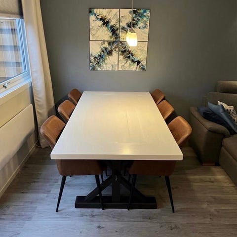 Har alltid brukt voks duk over bordet så det fremstår som nytt.