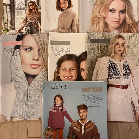 10 stk Sandnes Garn strikkehefter for barn. Pakken inneholder flere ulike hefter med oppskrifter til barneplagg, blant annet gensere, jakker, kjoler og tilbehør. Hvert hefte viser modeller med bilder og tilhørende oppskrifter, og gir informasjon om garnkvalitet, størrelser og design. Egnet for deg som ønsker strikkeoppskrifter til barn i ulike størrelser og stiler.