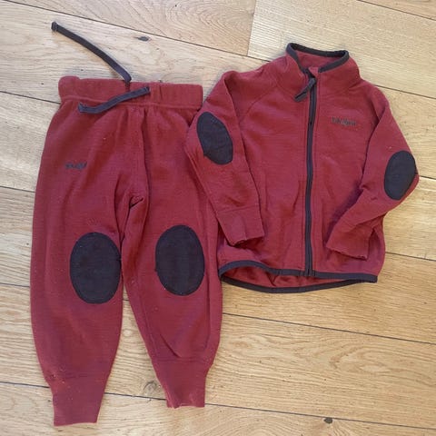 Selger nydelig ullsett fra Vikafjell i str 90/92, hjemmestrikkede votter følger med. Kan hentes i Krokstadelva eller sendes i posten.