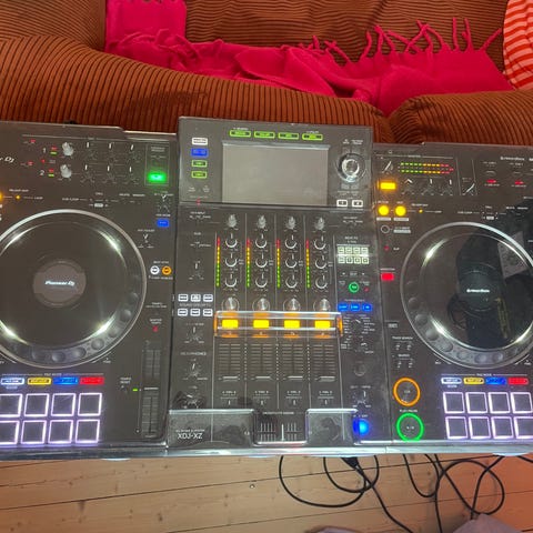 Pioneer DJ-kontroller med integrert mikser og skjerm. Enheten har to joghjul, flere performance-knapper, faderseksjon og sentral touchskjerm for visning av spor og funksjoner. Egnet for DJ-bruk hjemme, i studio eller på arrangementer der man ønsker digital avspilling og miksing av musikk fra ulike kilder.