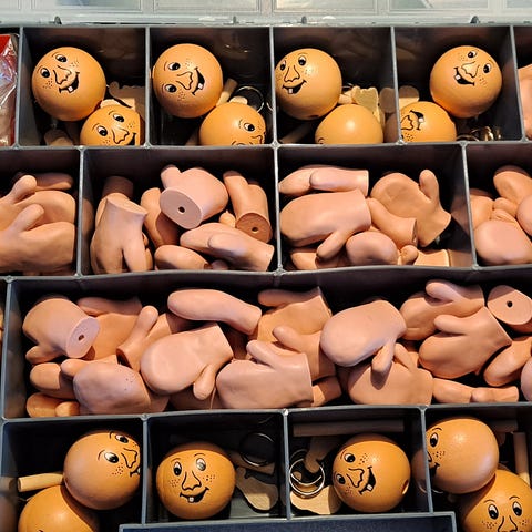 8 fabrikk-lagede trollansikt, 2 hjemmelagede trollansikt, 10 trekule-trollansikt, 6 par hender, 2 par føtter, 1 mønster for dame-trollansikt, mesteparten fra Panduro.