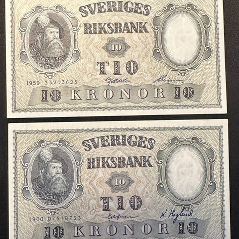 3X Sverige 10 kroner sedler usirkulerte 1956, 1971 og 1972 pris inkludert porto