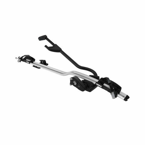 Thule ProRide, takmontert sykkelstativ i sølv med sorte detaljer. Fullt funksjonelt, kun enkelte mindre bruksmerker av kosmetisk art.