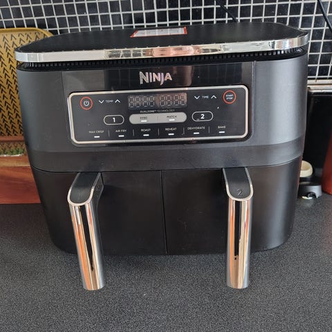 Ninja Crispi har et kompakt, moderne design som passer godt på alle kjøkkenbenker. Den er bygget for mobilitet, med en lett PowerPod som klikkes på matbeholderne. Det gjennomsiktige glasset lar deg følge med på maten mens den tilberedes.
