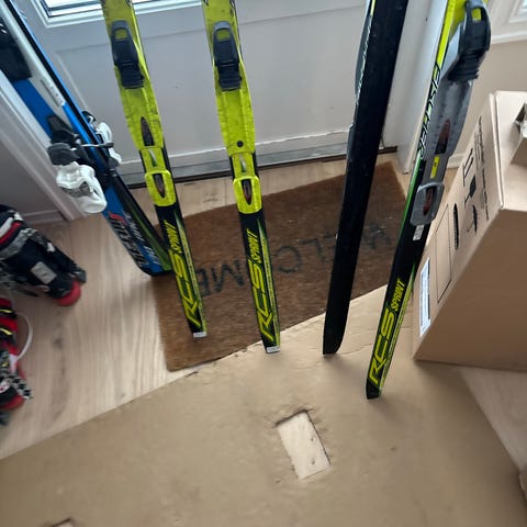Fischer Sprint Crown langrennski med binding i lengde 140 cm. Klassiske langrennski med smørefritt mønster (Crown) under sålen.