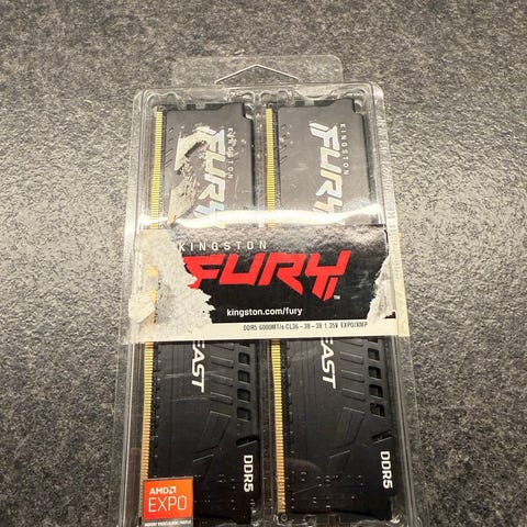 Selger to RAM brikker 5200MHz CL40 Kingston Fury Beast grunnet oppgradering til 32GB. Brikkene er testet med MemTest86, ingen feil.