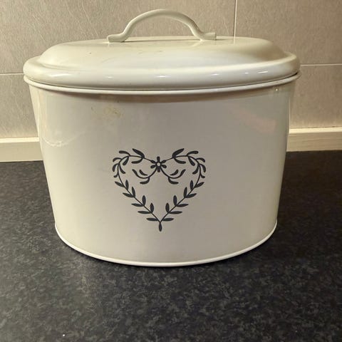 Åhléns Home brødboks i svart metall. Rektangulær boks med hengslet lokk og metallhåndtak i front. Egnet til oppbevaring av brød og annen tørr bakst på kjøkkenbenken. Nøytralt, blankt design som passer inn i de fleste kjøkkenstiler.