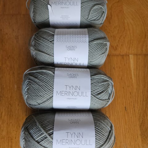 Tre nøster Sandnes garn merinoull, i en nydelig mørk julerød farge. Alle er fra samme parti.