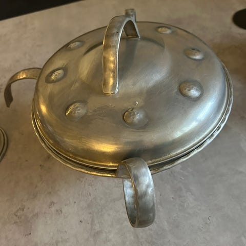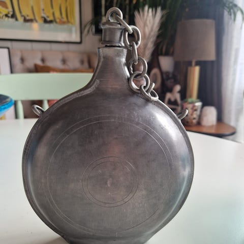 Selger en eldre tinnflaske (pewter) stemplet Zinn / Pewter 95 %.