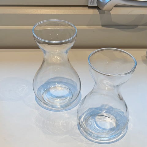 Lyslykt/vase i klart glass. Glasset har avrundet form med litt buet kant øverst.