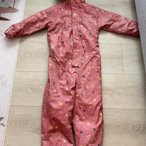Kattnakken helårs regndress. Har et lite hull på kne. Kan helt sikkert lappes for den som kan det. Mangler fotstrikk. Forbehold om fler anmerkninger