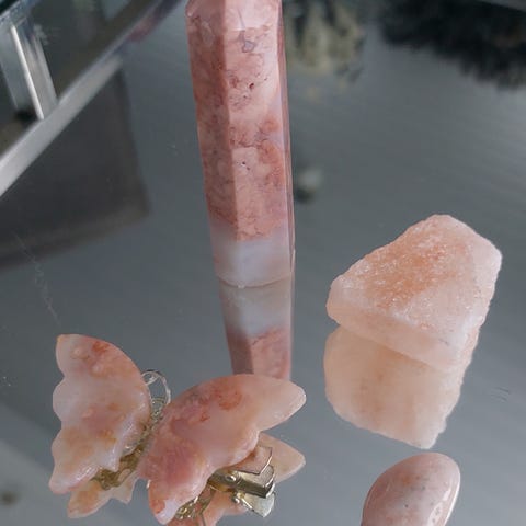 * Mexican crazy lace agate med kvarts og ametyst tårn
