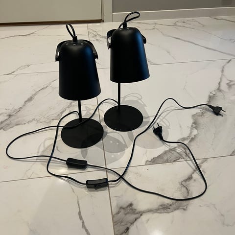 Svart, kubeformet bordlampe. Lyspære medfølger.