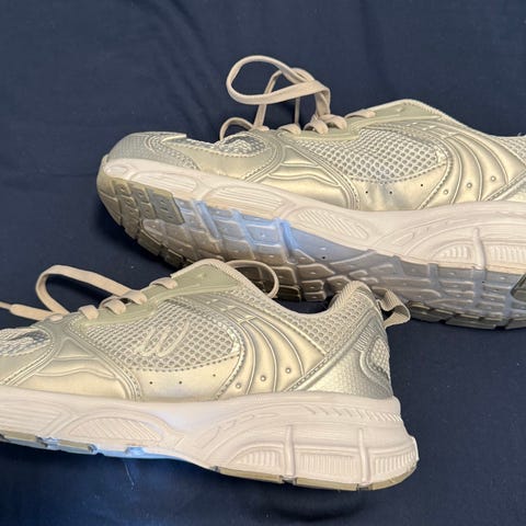 Skoene er i størrelser 43, men passer til 42.