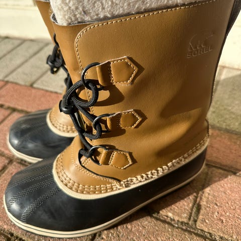 Sorel vintersko for barn str 34 unisex i brun og svart. Skoene har overdel i syntetisk materiale med gummiert front, snøring foran og mykt, fôret innvendig materiale som gir varme. Egnet som vinter- og høstsko til utebruk i kaldt vær.