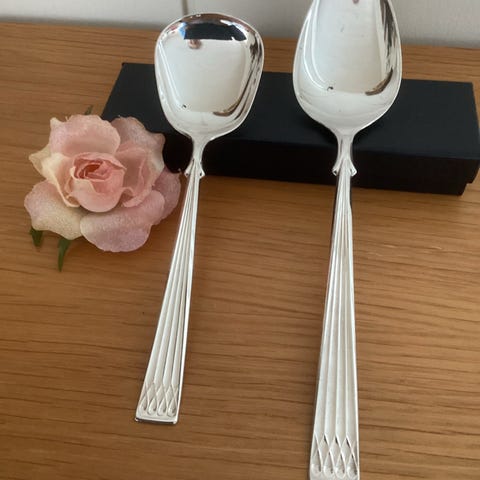 Fin skje i sølv merket 830s. Har et blad på enden.