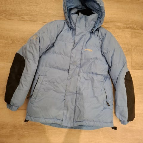 Godt brukt jakke- men fortsatt mye bruk igjen. Veldig god og varm på tur. Gode mulighet å stramme inn, at den ka brukes i flere år. Er brukt til gutt fra han var 125cm til 140cm.