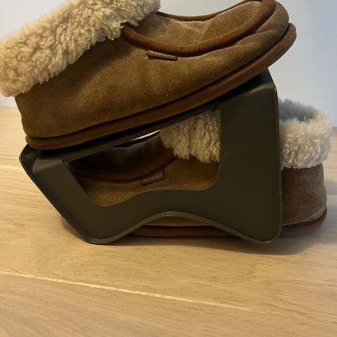 Stablebar skoeske med dør, 4 stk. Pent brukte, kun stått i et skap. Lett og luftig oppbevaring til alle typer sko – opp til størrelse 46.