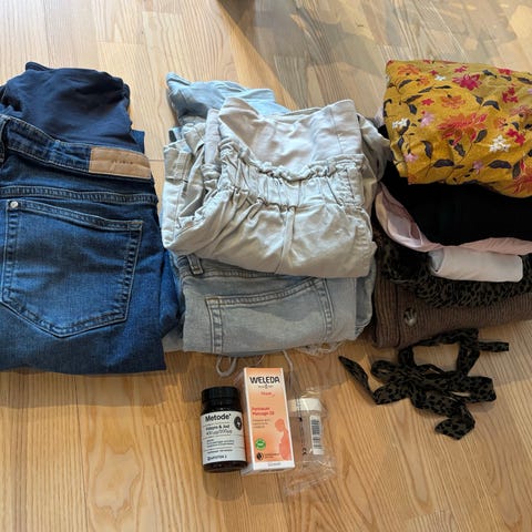 Mumsie Rose overall/snekkerbukse i kordfløyel i størrelse 22 aus, som tilsvarer eu strl. 50 Buksen er laget i myk cordfløyel i en rosatonet farge. Modellen er utformet for gravide og småbarnsmødre, med plass til voksende mage og praktiske løsninger for å bære barn istedenfor en bæresele. Alt av tilbehør medfølger. Denne modellen selges ikke lenger. Kun prøvd på da den ikke passet og var vanskelig å returnere.