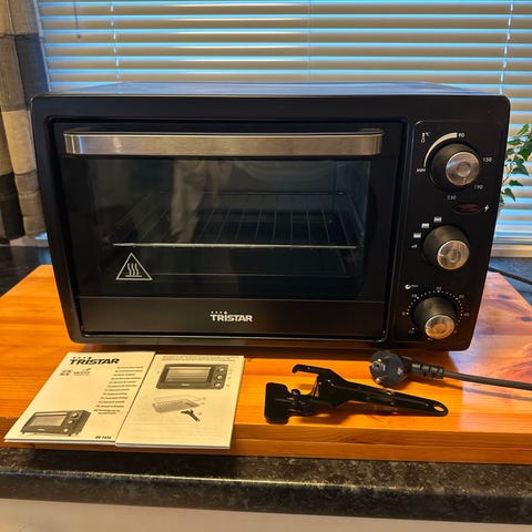 Small mini oven (about the size of a microwave or even smaller). Super handy to have at home or in student apartment when you just need to bake, for example, a single bread roll or frozen croissant.
