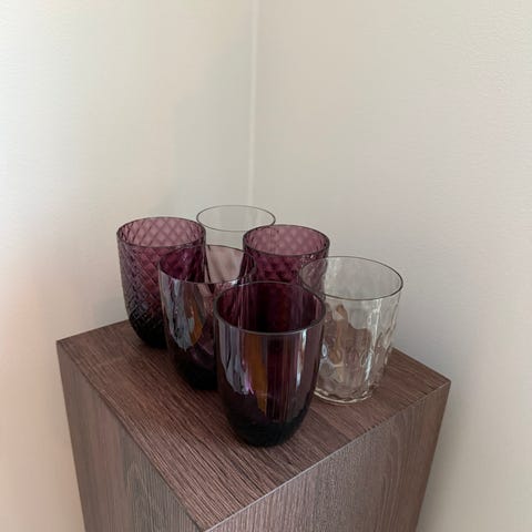 6 ubrukte krystall glass fra merket Anna Von Lipa 🫶🏽 4 stk lilla og 2 stk i klart glass. Nypris var 249,- per stk