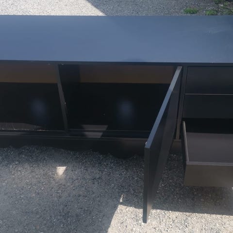 Stilren TV-benk i sort høyglans – god oppbevaring