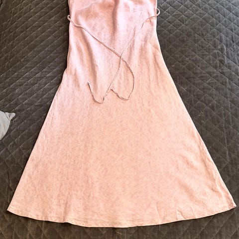 Vakker kjole fra Nygårdsanna, laget i lin av høy kvalitet. Kjolen er lett, luftig og behagelig mot huden, med diskrete, tynne striper, et enkelt og tidløst snitt. Perfekt til vår og sommer, men også flott sammen med strikk eller cardigan på kjøligere dager.