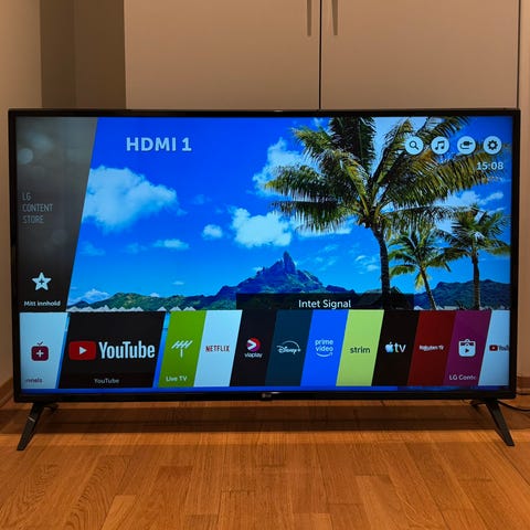 TV-en har godt bilde med 4K-oppløsning og støtter populære strømmetjenester via LG sitt Smart-TV-system (webOS).
