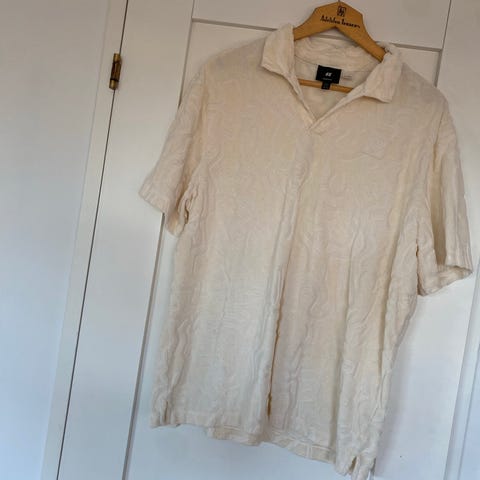 Flott linskjorte til herre med korte ermer i 100% lin. Ingen merker / slitasjer, men trenger å strykes/steames :)