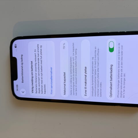 Apple iPhone 13 mobiltelefon med 256 GB lagringskapasitet. Modellen har dobbelttilkamera på baksiden og frontskjerm med Face ID. Fargen fremstår som svart. Egnet for vanlig bruk.