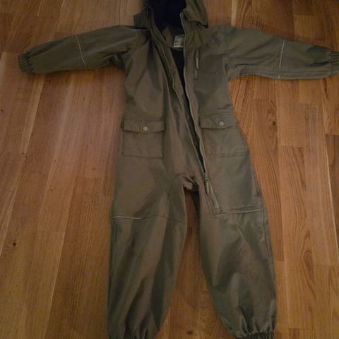 Polarn O. Pyret parkdress for barn i størrelse 110. Dressen er blå og laget i polyester. Modellen er unisex og har hel glidelås foran, strikk under føttene og refleksdetaljer på armer og ben. Egnet som yttertøy for barn i barnehage- og småskolealder.