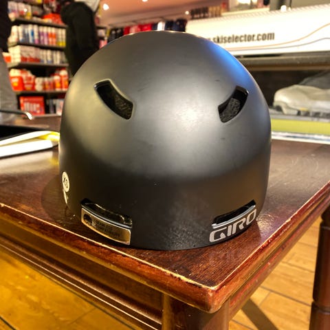 Giro ski- og snowboardhjelm i størrelse S. Hjelmen har grønn matt overflate og flere ventilasjonsåpninger på topp og bak. Justerbar hakestropp med klips. Egnet til bruk ved ski- og snowboardaktiviteter.