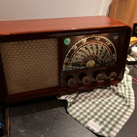 Denne er restaurert . Alle defekte komponenter og rør er byttet, den fungerer som den skal. Denne har også fått ettermontert Bluetooth så man kan streame det man vil.