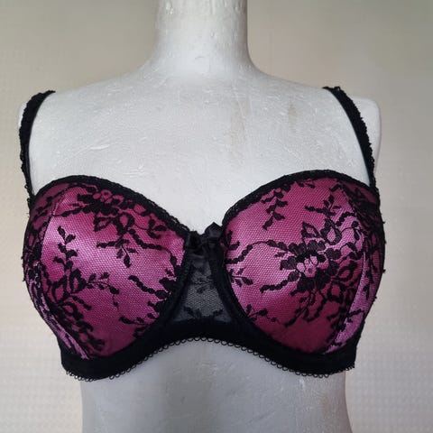 Playful Promises, Eddie Pink, BH 32A, BH 70A, liten cup, petite BH, mesh BH, harness BH, crossover bra, longline BH, rosa undertøy, ny BH, trening BH, første BH, trans undertøy, alternativ undertøy, designer lingerie, blonde-BH, harness BH, lingerie, undertøy, sexy undertøy, designer lingerie, bøyle-BH, 70C, 32C, ny BH, uåpnet, limited collection