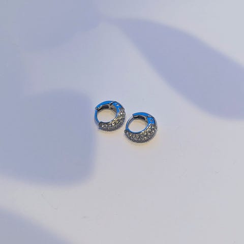 Mockberg øredobber for dame i stål med krystall. Hoop-modell med tett rad av små krystaller på forsiden. Hoops I rustfritt stål, kombinert med krystaller som gir en glitrende overflate. Veldig flotte!