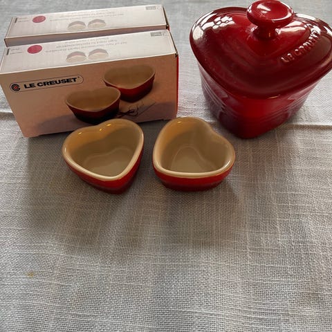 Ubrukt Le Creuset Star ramekiner keramikk rød sett