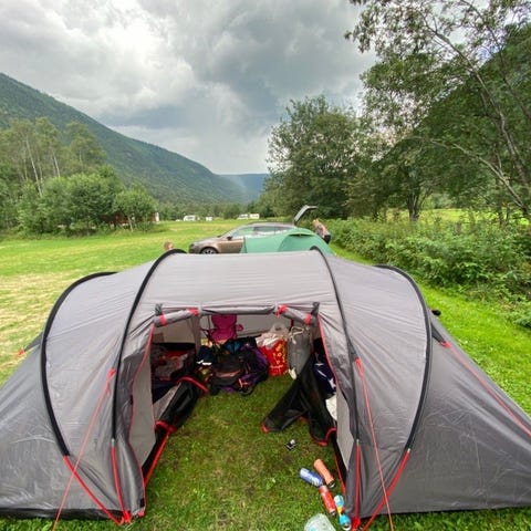 Køya er brukt noen ganger, men myggnetting og tarp er helt nytt..