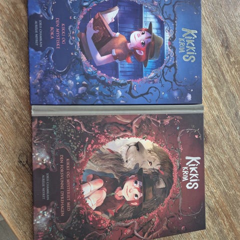 Vigmostad & Bjørke Nikoline bokserie, tegneserier i 5 bind. Inneholder følgende titler: «Nikoline – Kråkeslottet i skogen», «Nikoline – Jenta som elsket fabeldyr», «Nikoline – Heksejentas hemmelighet», «Nikoline – Fanget i drømmeland» og «Nikoline – Sandkorn og stjernestøv» (titler tolket ut fra forsidene). Bøkene er illustrerte og utgitt som tegneserieromaner i hardback. Passer for barn og unge lesere som liker fantasy og eventyrpregede fortellinger med gjennomgående hovedperson Nikoline. EN bok kr 30