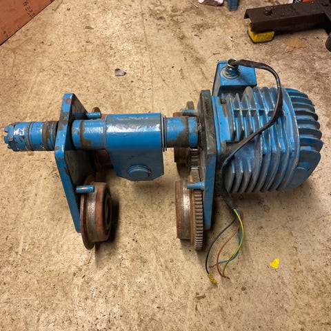 Stor proff sikke maskin, med motor trefas, og en del forskjellige trinser. Den veier ca 220kg, har satt den på er kraftig eikeplate med hjul. Kan følge med en frekvens omformer, med litt tillegg i prisen. Hvis man bruker frekvensomformeren, kan men bruke enfas inn og få trefas ut. Er åpen for et bud.