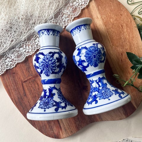 💙 Lysestake i blå-hvitt porselen – G & C