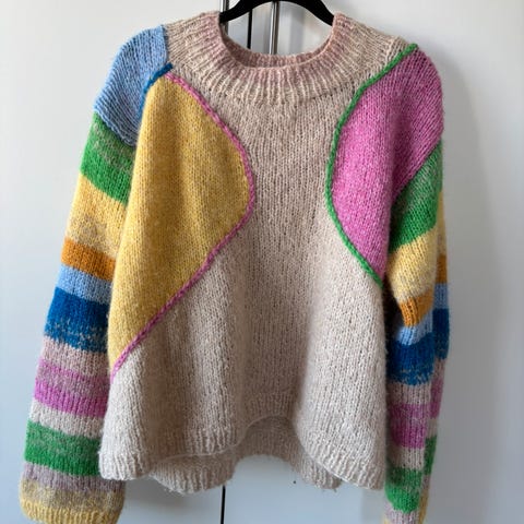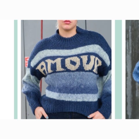 Darling genser størrelse XS/S. En kort og stilig genser med 3 fletter på brystet. Strikket i orginalgarn. Riktig farge er som modellbildet, petrolblå farge 229. Dette bildet er tatt fra nettet.