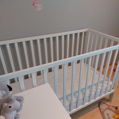 Sengen er brukt som gjesteseng hos besteforeldre og er lite og pent brukt.