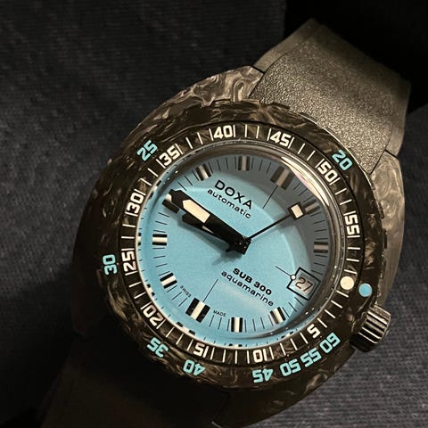 Selger en pen turkis gummirem til Doxa