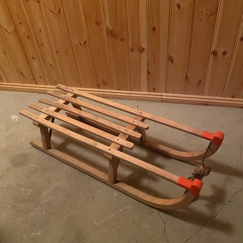 Eldre kjelke selges. Kan brukes til aking eller pynt på hytta.