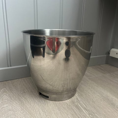 Kenwood kjøkkenmaskin med rustfri stålbolle og flere medfølgende redskaper. Maskinen leveres med visp, eltekrok og K-spade for ulike typer baking og matlaging. Kjøttkvern og blender .