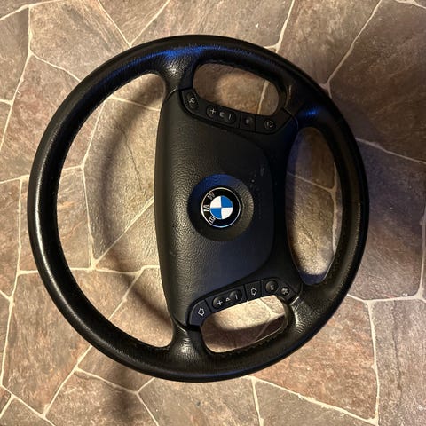 BMW ratt med multifunksjonsknapper. Rattet har integrerte knapper på begge sider for styring av funksjoner som for eksempel lyd og cruise control, avhengig av bilens utstyr. Passer til bmw e36 e46 e39
